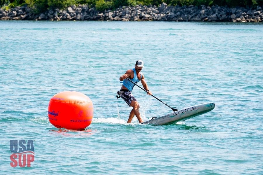 Get to that buoy FIRST! That was my main goal during training, so I worked a lot of my sprint starts which helped during the sprint and tech course. For distance training I am fortunate enough to have a strong paddle team with Flying Fish and other paddlers to train with in the South Florida community.