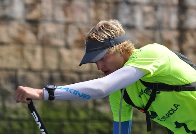 Jérémy Teulade was the unfortunate rider of the event. 30 meters into the race and his paddle broke in three pieces. The Starboard France athlete who organized a crowdfunding campaign with his brother Ludovic to fund their Euro Tour, was obviously absolutely gutted and had to come back to shore on the safety boat to receive a sympathetic round of applause from the watching crowd, cheering him up a bit. Better luck next time Jérémy!