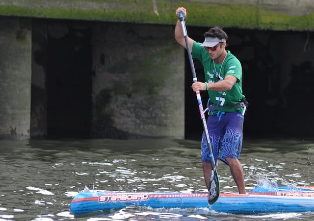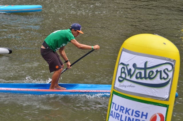 It took 4 attempts in the Euro Tour but he finally did it! Titouan Puyo the french paddler from the island of New Caledonia is on top of the podium this time. A well-deserved victory after winning the sprints on Day 1 with a 3-meter lead over Connor Baxter and a couple more over Leonard Nika and finishing 2nd by a thread in an epic photo-finish sprint with Starboard comrade Connor Baxter. Humble, determined and strong, Titouan did a formidable job proving the SUP world that he could now be counted with on the sprints – which wasn't really his forte so far. This is not the last stop of the 2015 Euro Tour for Titouan Puyo aka T2 who is not the Unidentified Flying Rider we interviewed last year when out of the blue he showed up at the France championships and won them, qualified for the 2014 World Championships and won them too. He is taking a wee break though, not joining the Noja (Spain) or Marotta (Italy) events next week-end, as he admitted feeling tired after a whole month of racing and travelling. However he is considering going to the last stop of the Euro-Tour in Namur (Belgium) on the first week-end of July before heading back home to New-Caledonia.