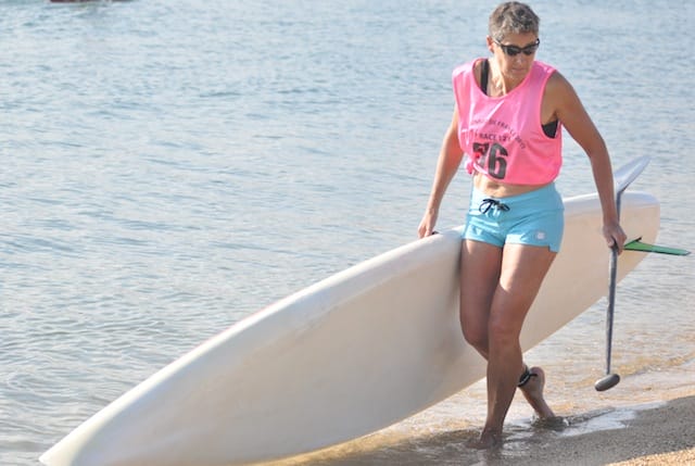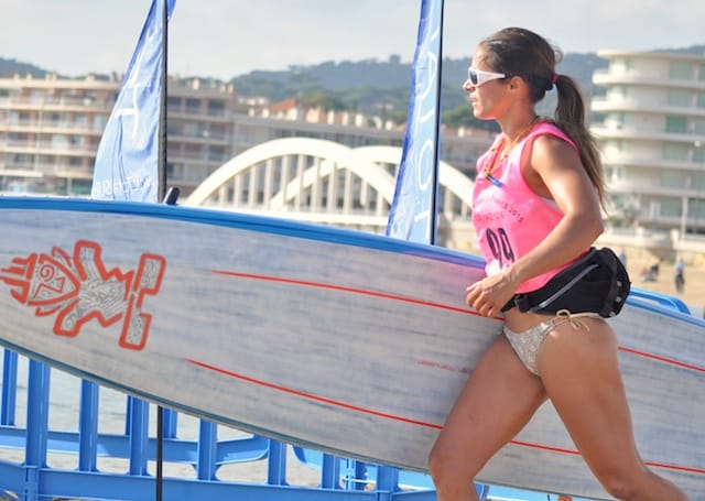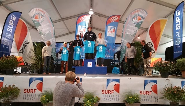 Amandine Chazot un peu déçue de sa double 3ème place, espérait tenir la dragée haute plus longtemps à ses deux adversaires mais restait réaliste sur sa jeune expérience et confiante pour la suite. Avec seulement une petite année de pratique (sa 1ère course date du SUP Paris Nautic 2014), sa progression est déjà fulgurante avec déjà à son cou le titre de Championne de France 2015 en 14 pieds. A noter qu’Amandine Chazot n’a pas tout à fait attaqué ces championnats dans les meilleurs conditions, arrivant à 7h30 le samedi matin, quelques heures avant la compétition, après une journée de travail le vendredi et un Tours > Paris > Sainte Maxime en train de nuit.