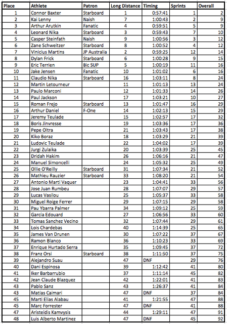 Dominant all through the Sprints – Connor went through the motions in the early rounds leading up to the Semi’s where he really turn on the power and stormed over the line. It was a similar story in the Final, getting a great start he was battling with Kai Lenny (Naish) straight out to the first buoy. Finding fifth gear he was able to round the top buoy first and Kai Lenny pushed him all the way but was not able to catch the electric Hawaiian who crossed the line in first. Connor, who makes it two bullet wins goes top of the 2015 SUWS Leaderboard after Stop 1 and shows the rest of the athletes his intent for the rest of the World Series.
