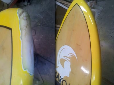 Siempre utilizamos para reparar, el mismo material de fabricación de la tabla.