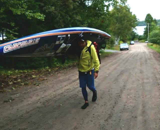 I started at a good pace and was just behind a few meters of the lead kayak racers when we hit the first lake. My strategy was to follow the 2 men canoes, who were way faster than me for the first 45 km across the lakes and as soon as we got to the rivers I would pull out the maps and start navigating. The first portage, after 2 hours was a 2 km walk/run to get to the next lake. The paddling got me warm but the rain kept coming down with outside temperatures only a few degrees above freezing so it was not very comfy. But hell, this was an expedition race.