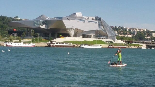 Armé de ma planche de « race » et de mon paquetage de camping, laissez-moi vous emmener sur ce fleuve emprunté d’histoire depuis l’antiquité ! Mon voyage commence dans le centre de Lyon par une belle matinée d’été, ici le fleuve est bordé de jolies rives joliment aménagées pour que les Lyonnais puissent profiter du fleuve et pratiquer toutes sortes d’activités, allant de l’apéro au street workout !