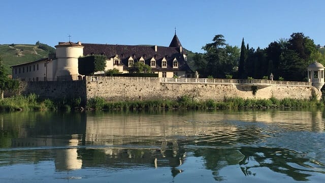 Je décide de m’arrêter pour aujourd’hui et je trouve refuge sur une péniche habitée par un couple d’Américains qui ont la gentillesse de m’offrir l’hospitalité pour la journée et la nuit. Le lendemain, le vent est tombé et passé le barrage de Vaugris, le Rhône devient pittoresque, il est bordé de jolies propriétés, on traverse évidemment aussi les célèbres AOP de Cotes Roties, Condrieu, Château d’Ampuis… la vision des vignes depuis l’eau est juste paradisiaque et il en faut peu pour que l’amateur de vins que je suis s’imagine des barriques de vin transiter par le fleuve que je suis en train d’emprunter.