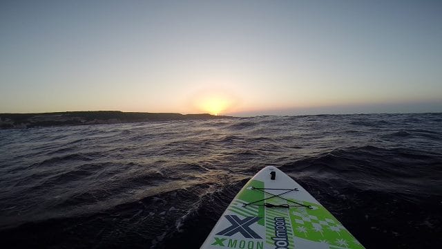J’ai effectué ce défi sur une X-Moon 12.0 de le marque Fool Moon avec une pagaie en carbone de la même marque. La planche est très maniable et m’a permis d’avancer correctement quelles que soient les conditions aussi bien quand la mer était agitée que les jours de vent.