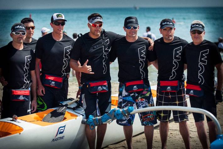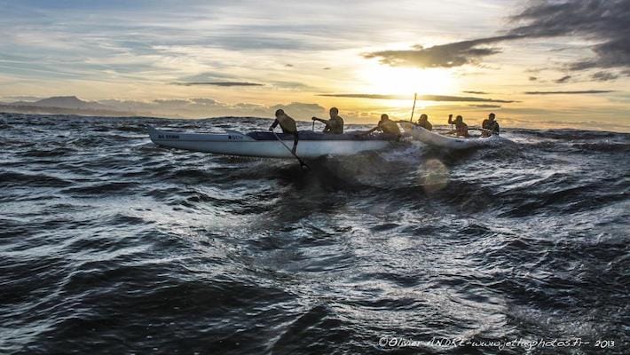 La V6 est une discipline à part entière. Tu prends des rameurs individuels et souvent individualistes et tu te fixes l’objectif d’en faire un équipage. C’est un sport collectif avant tout, tu viens ramer POUR et non avec le groupe. Chacun son rôle à bord, chaque rameur sait ce qu’il a à faire et assume ses responsabilités. Quand le groupe fonctionne alors tu peux t’amuser aussi bien dans les downwind sous les thermiques du soir ou sur une course majeure qui te colle plus de 5 heures sur l’eau ! La rame en équipe procure un sentiment différent, quand tu gagnes des courses avec des conditions de mer éprouvantes et au terme d’un beau combat avec tes concurrents, tu serres tes gars contre toi à l’arrivée et tu te délectes à refaire la course autour de quelques bières. Quand ça fonctionne ça devient un TEAM, on se connaît tous, on anticipe nos réactions, on prend soin les uns des autres… et on aime ramer ensemble.