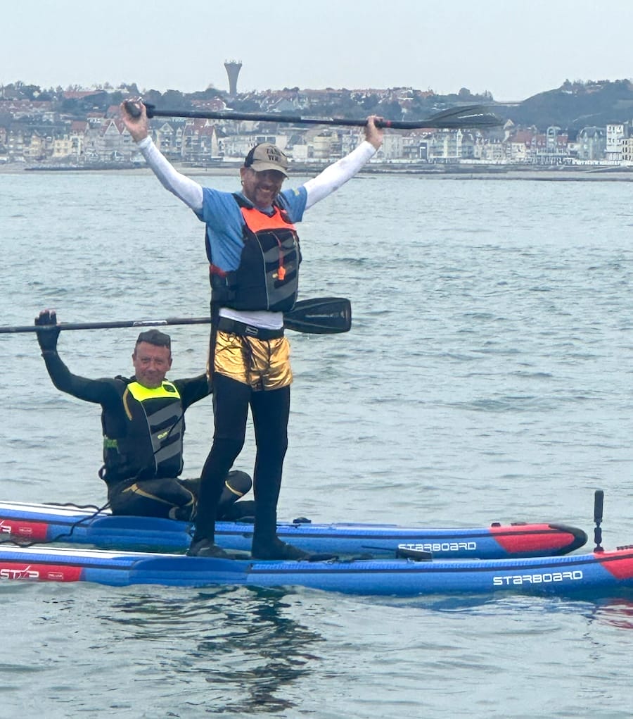 Two brothers have paddled across the English Channel to raise a huge sum for children’s cancer research. Jamie BartlettBundy, 50, dad to Pearl who passed away from an aggressive form of bone cancer called Ewing sarcoma in 2017, and his brother, John Bartlett, 56, completed the feat in seven and a half hours, paddling from Dungeness in Kent to Boulogne-sur-Mer in France on October 1.