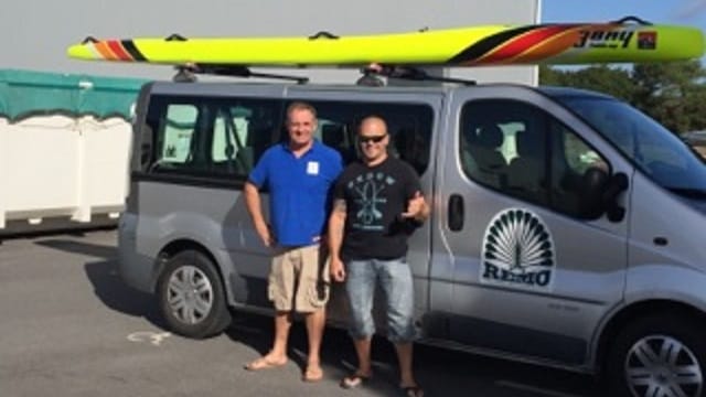 Depuis un an grâce à Patrice Remoivillede 3 Bay, j’ai enfin une planche de race ce qui me permet de participer à différentes courses. Il me suit dans mes délires de planche tandem, Patrice est toujours à l’écoute et veut sans cesse m’aider a améliorer les planches pour plus de confort pour moi.