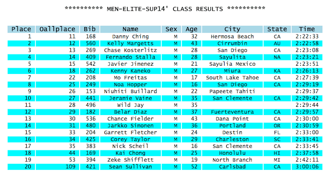 2nd Kelly Margetts 3rd Chase Kosterlitz 4 Fernando Stalla 5 Javier “Bicho” Jimenez