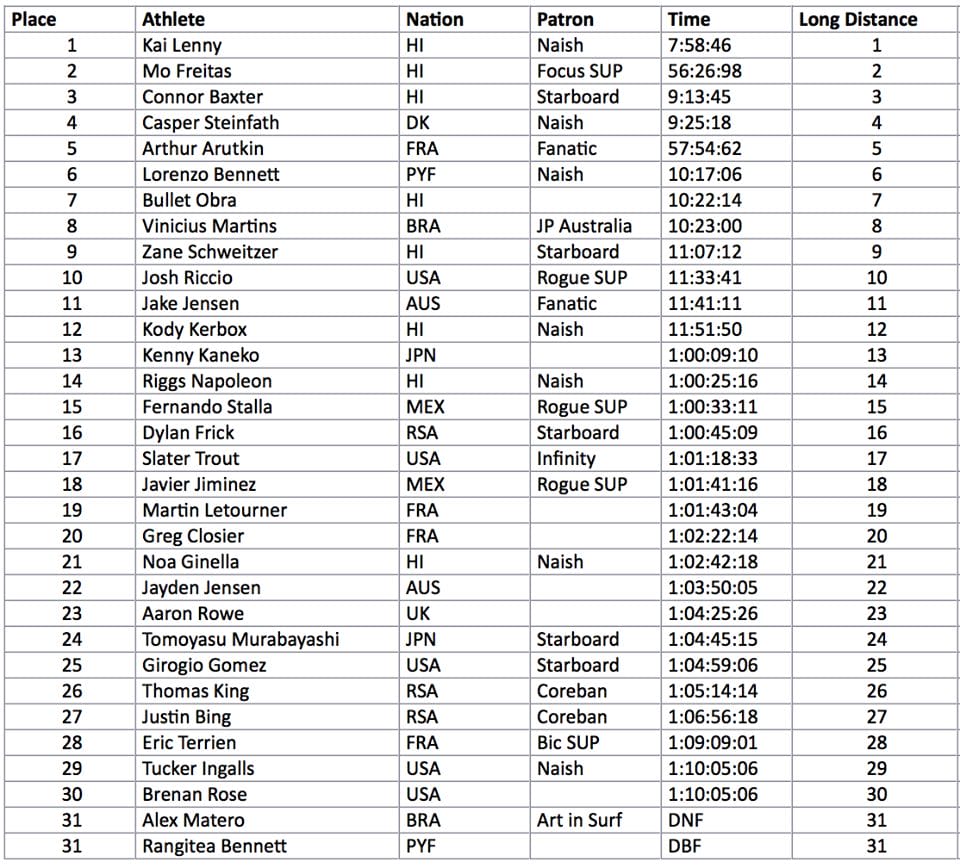 Mo Freitas finished 2nd and Connor Baxter who didn’t seem to be in his usual form, made up for the rest of the All-hawaiian podium.