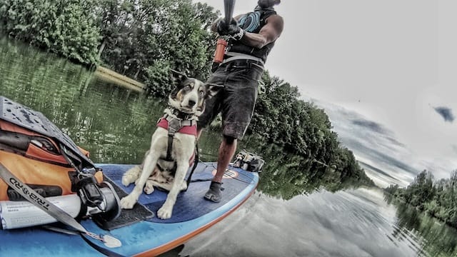 It’s just me and Nero. We carry 50kg worth of gear and stop for food every three days or so. We are traveling on a custom made inflatable board made by ULI in California. It’s a 14ft touring board from their new life series. It weighs 16kg and is reinforced with two strips of Kevlar.
