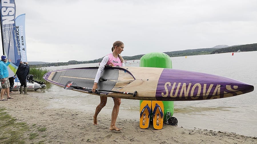 My favorite board is the SUNOVA Flatwater Elite Faast Pro 14 x 19, which is also my main choice for training. I use it for both flatwater sprints and long-distance races. In technical races and in open-water conditions I mainly use my purple custom board in 14 x 21.5. With its flat deck, low volume, and great stability, it’s currently the perfect fit for me.