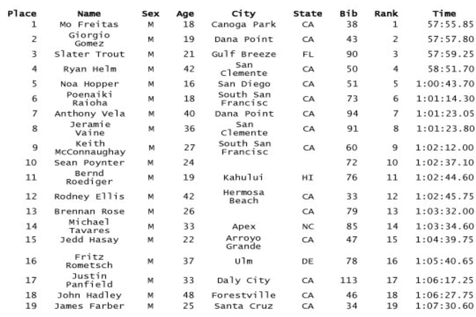 A quick report on the events that took place while you were unplugged. Today we'll look at the result of The Ultimate Waterman, the Santa Cruz Paddle Fest, the Dana Ocean Challenge and The Saucy Jack Classic