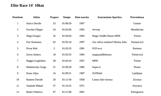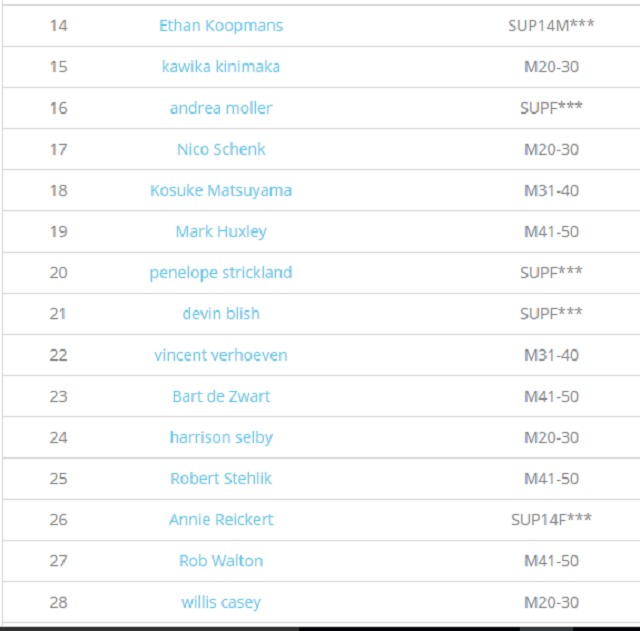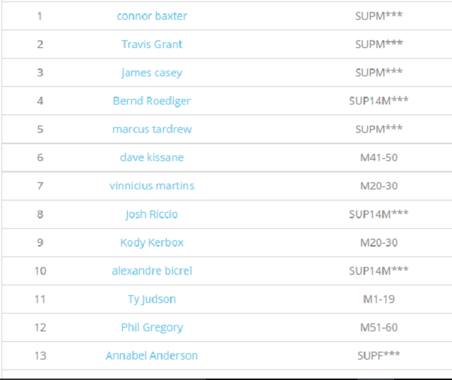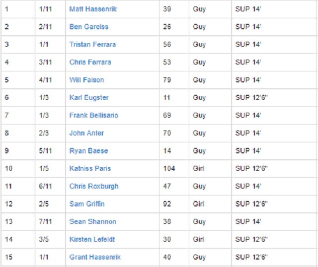 SUP Open Men’s results: