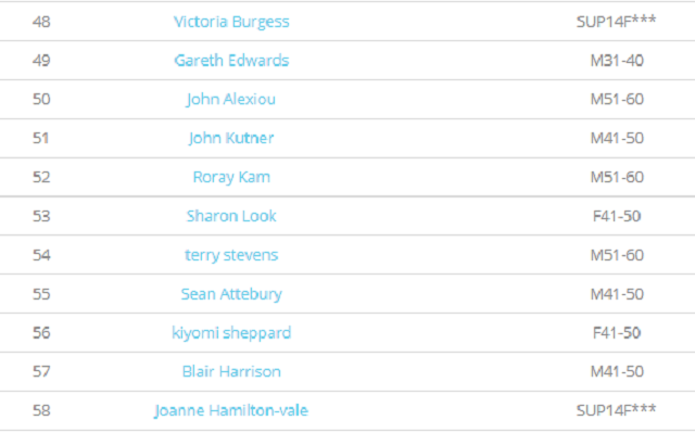 Women’s results: