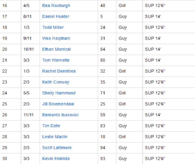 SUP Open Women’s results: